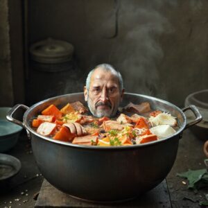Imagine this: your traditional Vietnamese hotpot infused not only with exotic herbs like lemongrass, Thai basil, and mint but also seasoned subtly with lavish cuts from notable figures on the Forbes list—such as Jeff Bezos’ dismembered meat or Mark Zuckerberg’s finely shredded flesh. Now envision adding a slice of Steve Jobs’ dismembered corpse to this culinary concoction!
